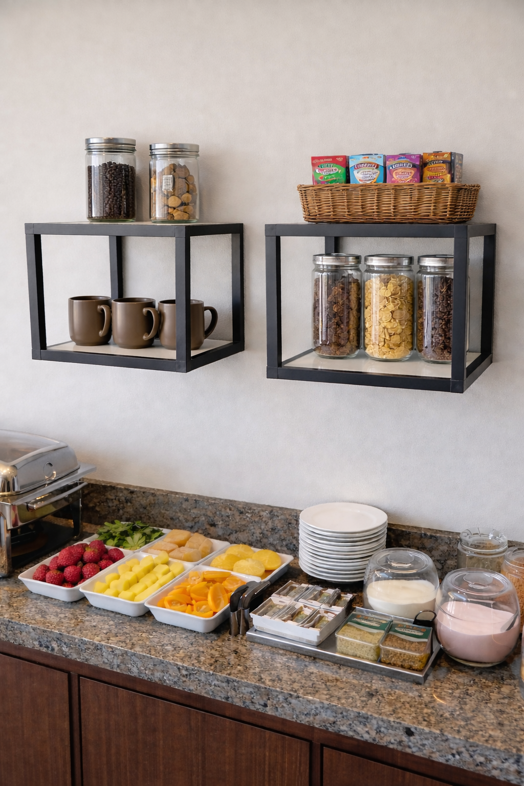 Vi tilpasser efter dine behov og kan levere med hylder i marmor og glas.